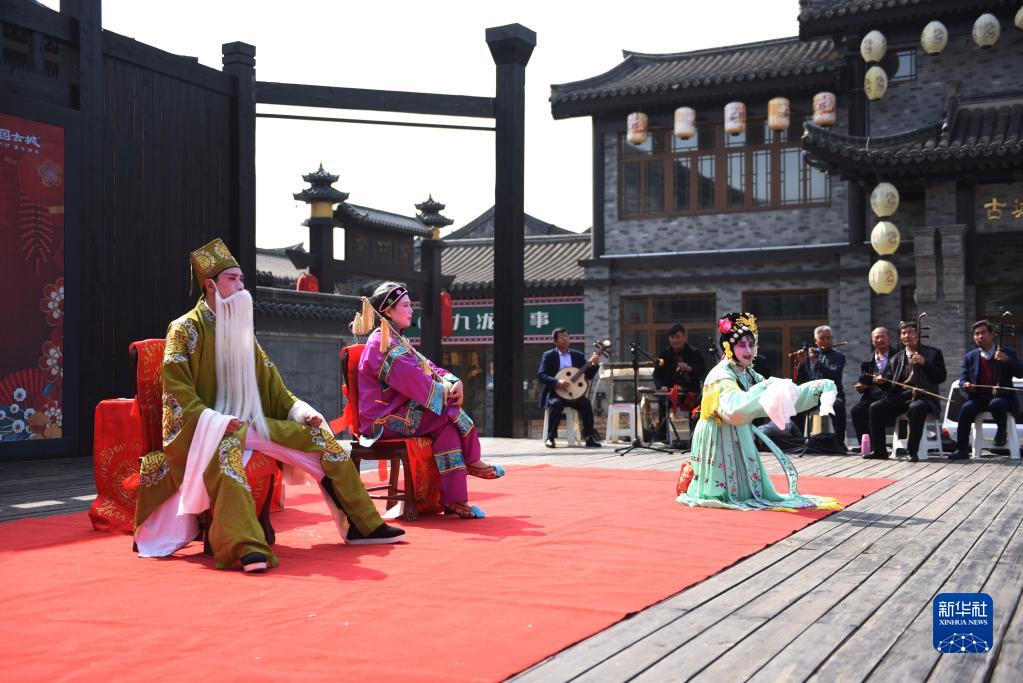 4月26日,演员在山东省临沂市郯城县郯国古城景区表演柳琴戏。