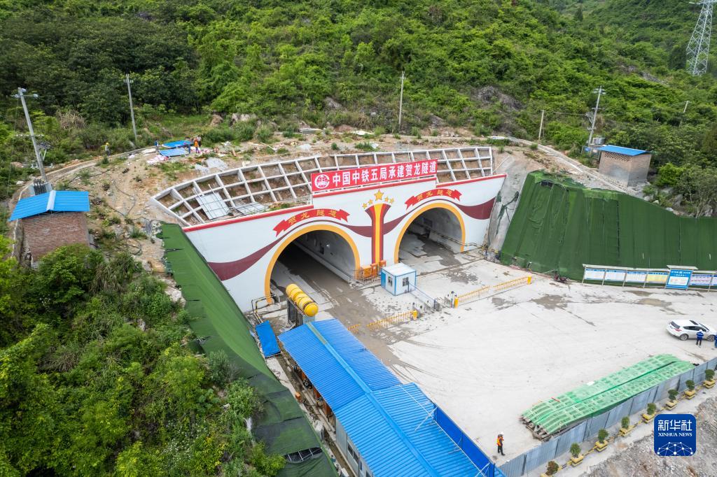 这是4月27日拍摄的湖南桑龙高速贺龙隧道(无人机照片)。
