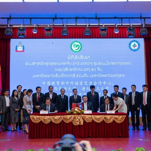 中国教育部中外语言交流合作中心、广西民族大学、老挝国立大学三方联合培养老挝本土中文教师项目签约仪式26日在老挝国立大学孔子学院举行。