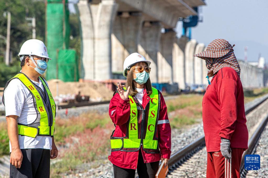 在泰国东北部的呵叻府巴冲县中泰铁路施工现场,大型工程机械紧张作业,重型卡车穿梭往来,泰国女生潘纳洛和中泰两国工程师一起忙碌着。因为喜欢中国文化并看好中泰两国经贸合作前景,潘纳洛曾在中国留学多年。今年33岁的潘纳洛走访过中国许多地方,亲眼见证了高铁给沿线民众生活和经济发展带来的红利。获得中国南开大学语言学博士学位后,她回到泰国应聘成为中泰铁路一期工程项目部监理总站的专职翻译。