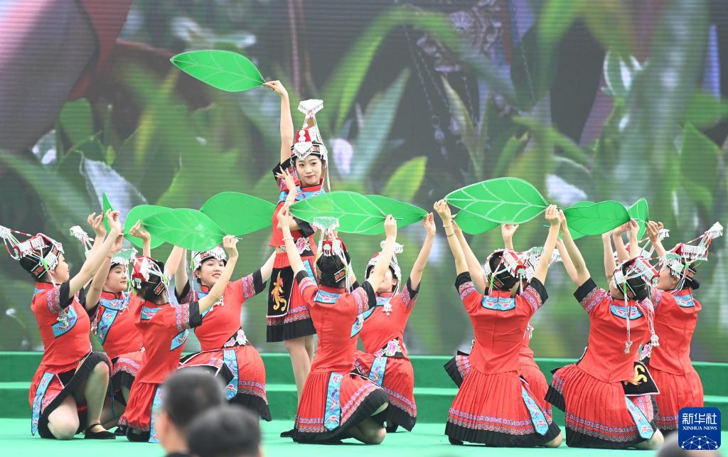 4月28日,演员在开幕式上表演歌舞《高山白茶敬北京》。