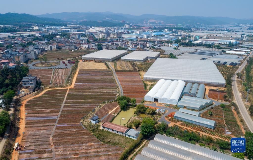 这是李淑斌团队位于昆明晋宁清水河村的育种基地(4月20日摄,无人机照片)。
