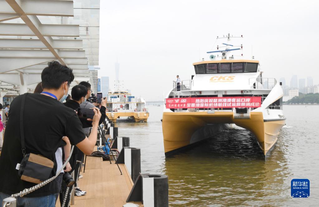 当日起,广州琶洲港澳客运口岸往返香港国际机场航线试运营。旅客从琶洲口岸乘船,可直达香港国际机场(海天码头)。试运营期间,琶洲口岸往返香港国际机场的航线每天均有一个班次。其中,琶洲开航时间为9时45分,预计12时5分到达香港国际机场(海天码头);香港国际机场(海天码头)开航时间为14时,预计16时20分抵达琶洲。