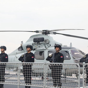 4月28日,中国海军第44批护航编队从浙江舟山某军港解缆起航,随舰机组、特战队员在甲板整齐列队。