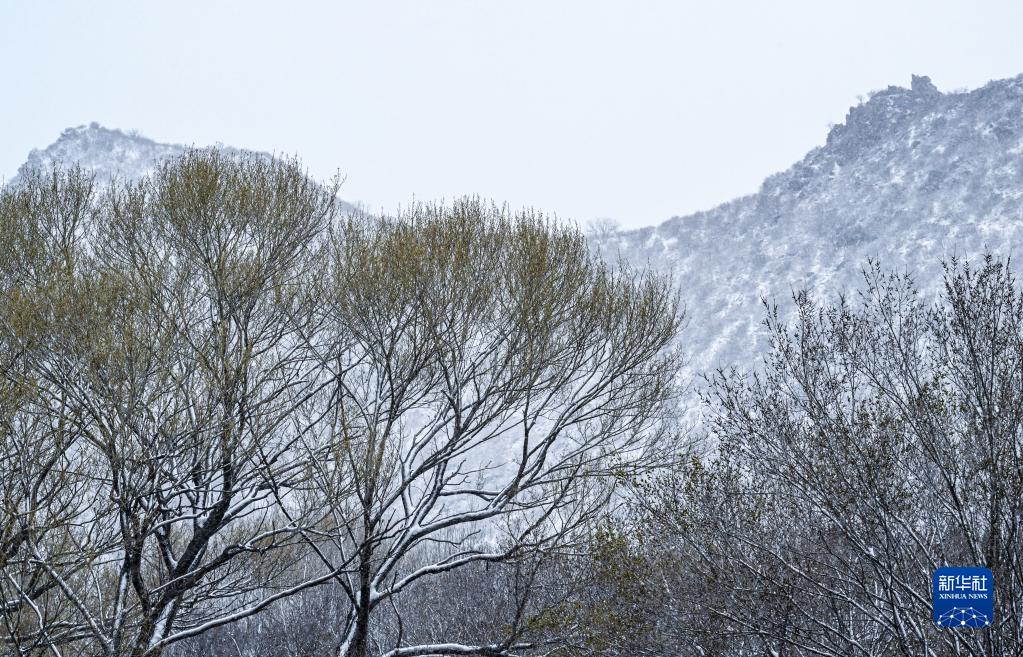 4月28日拍摄的内蒙古自治区呼和浩特市北郊的大青山自然保护区雪景。