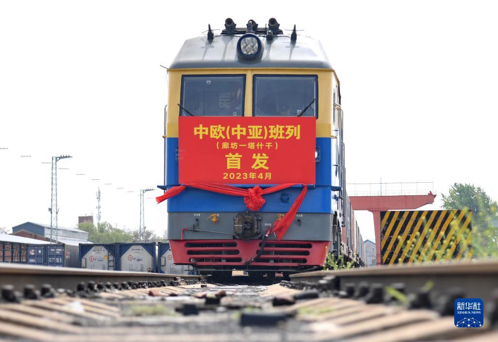 当日,河北省廊坊市正式开通中欧(中亚)班列(廊坊——塔什干)。首列开行的集装箱班列编组55辆,由廊坊北铁路货场始发,经霍尔果斯口岸出境,途经哈萨克斯坦,最终抵达乌兹别克斯坦塔什干,全程约6000公里,预计运行时间约15天,货物总重量1400余吨,主要包括保温管、机械设备、型材等。