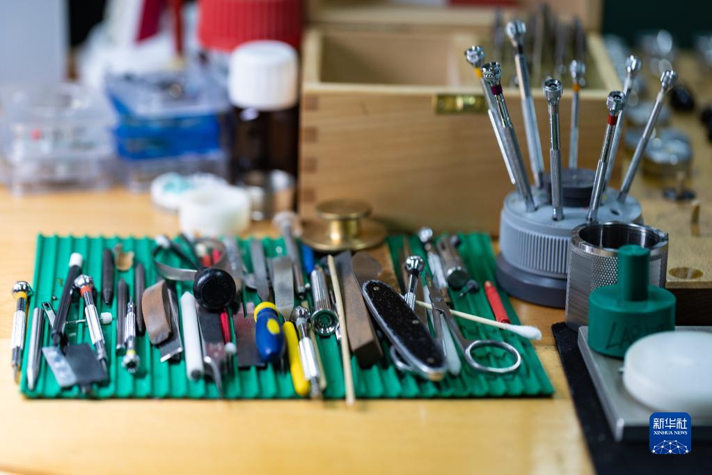 4月25日在位于深圳的飞亚达钟表大厦拍摄的刘中华工位上的工具。新华社记者 毛思倩 摄