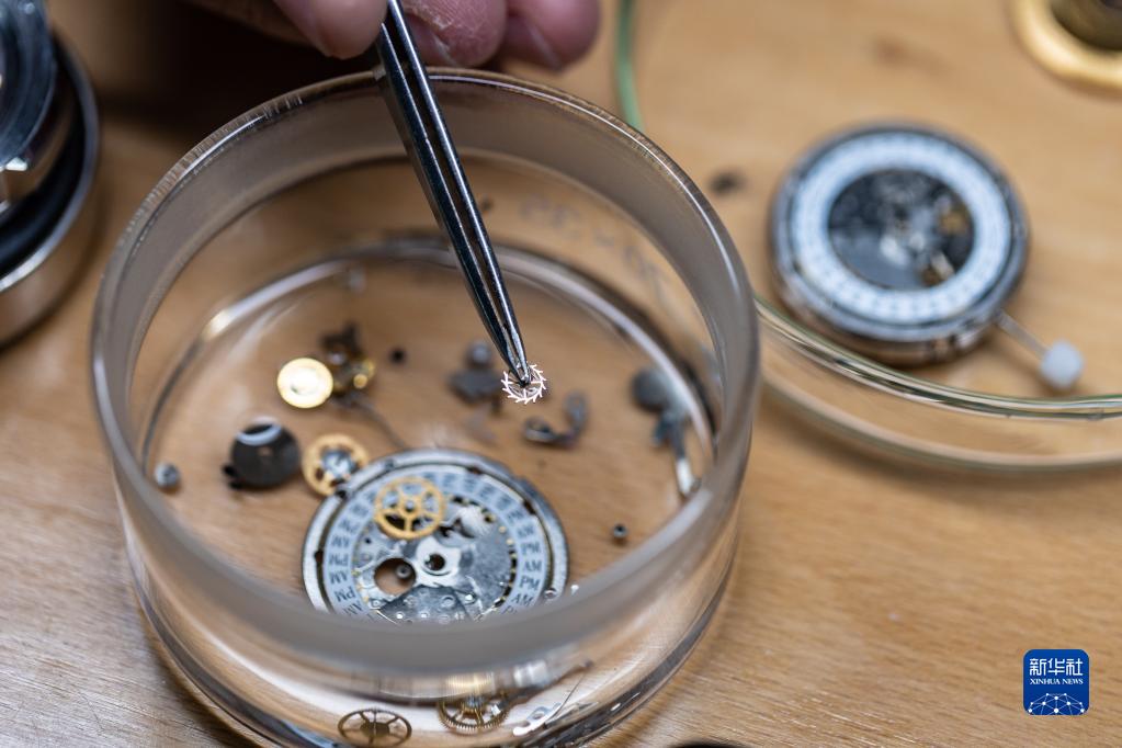 4月25日,在位于深圳的飞亚达钟表大厦,刘中华清洗手表拆下的零件。新华社记者 毛思倩 摄