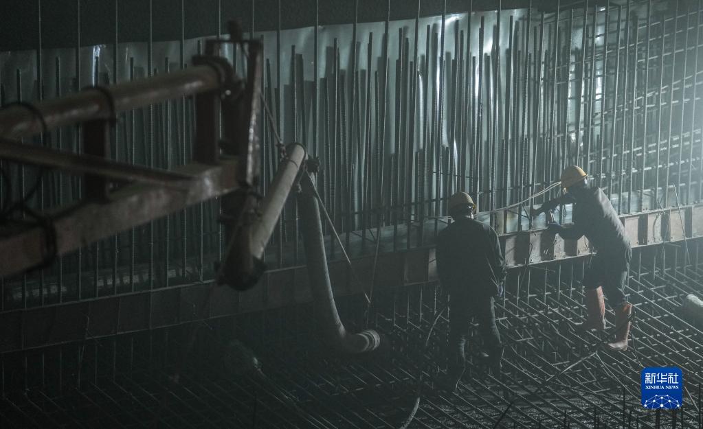4月29日,中铁十八局工人在贵阳地铁S1线一期工程锦江路站施工。