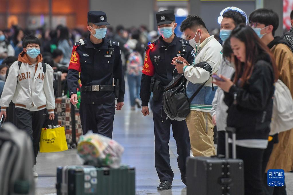 4月29日,长春铁路公安处民警在长春站候车大厅执勤。