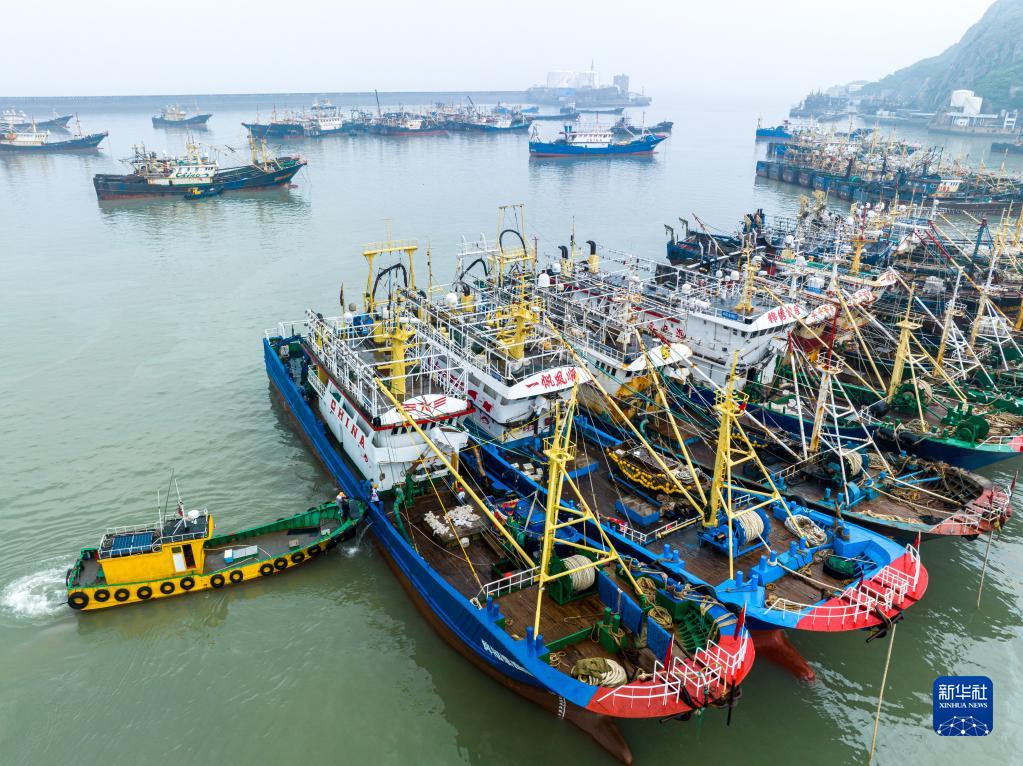 当日,在浙江省温岭市石塘镇,渔船陆续进港停靠,迎接即将到来的休渔期。