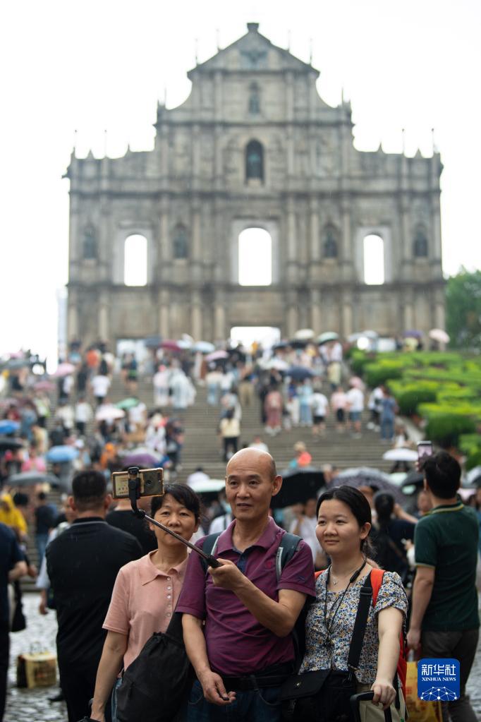 当日是“五一”假期第一天,澳门议事亭前地、大三巴牌坊等景点游客如潮。