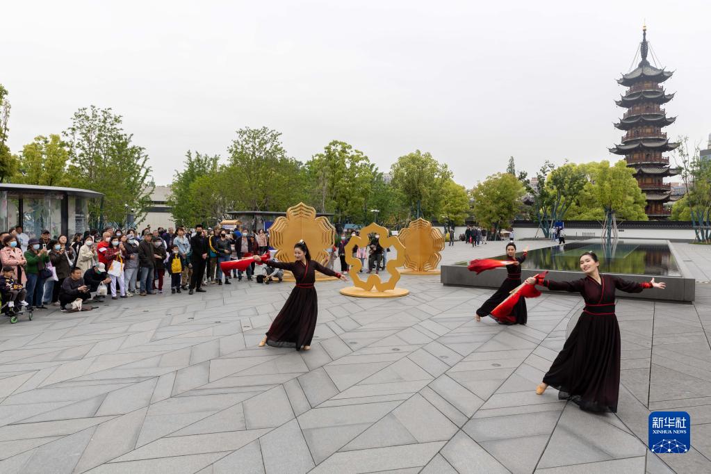 4月29日,人们在龙华广场观看国风舞蹈表演。