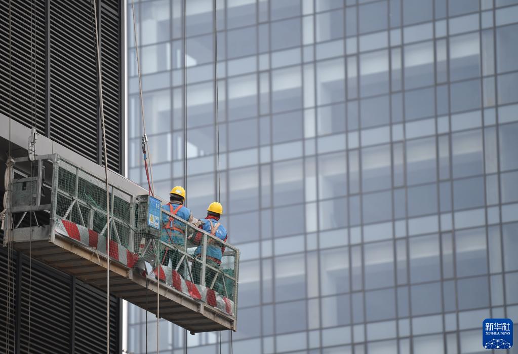 在位于陕西省西咸新区的西部云谷三期建设项目施工现场,中建三局西北公司工人在工作(2023年2月17日摄)。