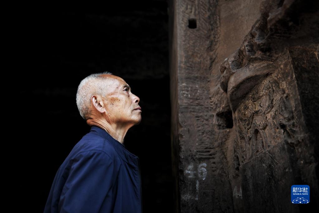 四川省资阳市安岳县卧佛院内存留着大批盛唐时期的摩崖造像和石刻佛经。今年73岁的吴忠富陪伴这些国宝已整整41年。