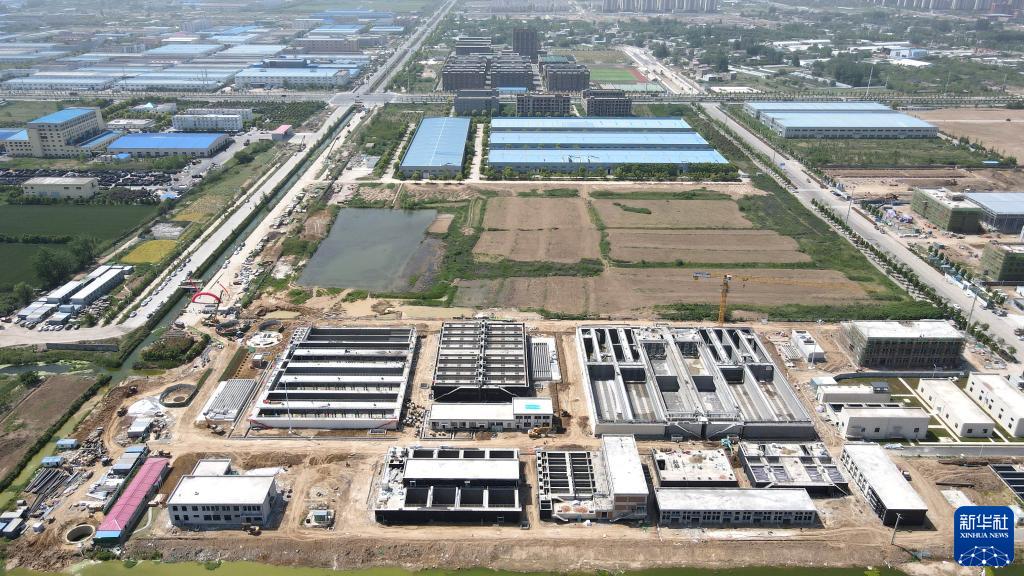 4月30日拍摄的怀远经济开发区第二污水处理厂项目(无人机照片)。