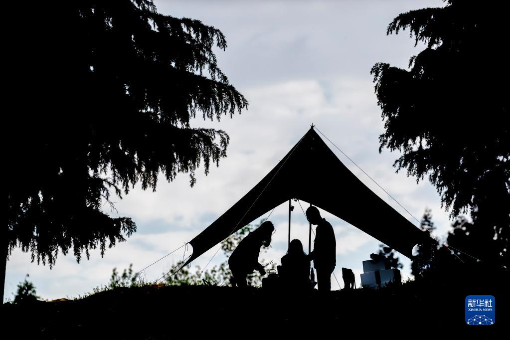 5月1日,游客在重庆市南川区三泉镇马嘴村露营。