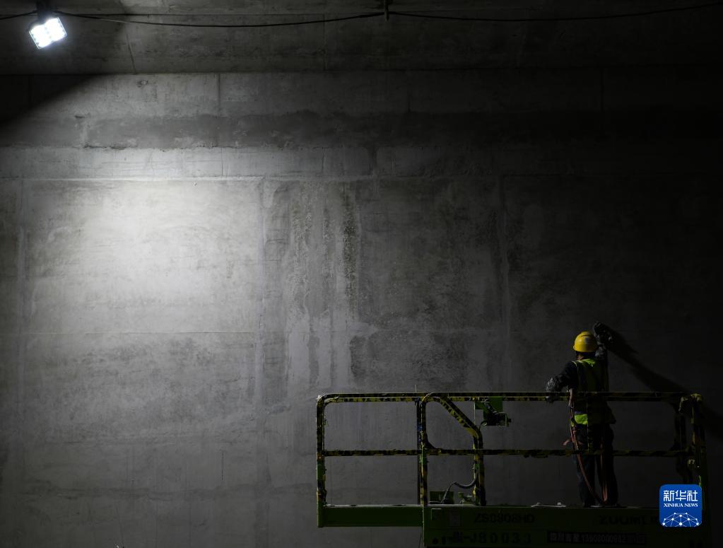 5月1日,在成都地铁27号线一期工程项目花照壁北站施工现场,中建三局的工人在施工。