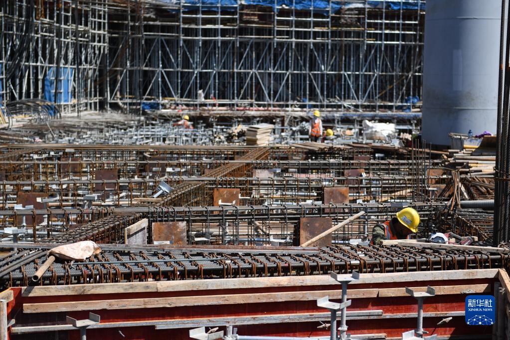 5月1日,中建八局的施工人员在长沙机场改扩建工程T3航站楼工程项目现场作业。