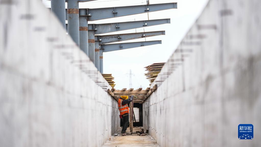 5月1日,中铁建工集团工人在贵州贵安新区贵安站扩建项目工地施工。
