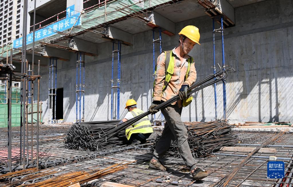 5月1日,工人在中建二局陕西分公司高铁新城项目工地施工。