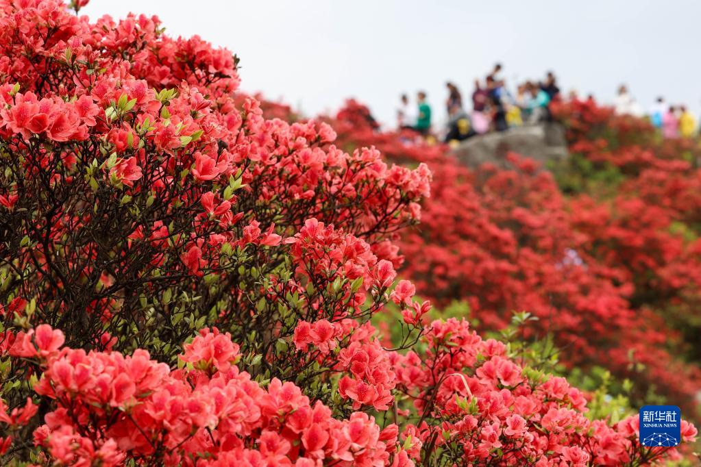 5月1日,游客在贵州省黔东南苗族侗族自治州丹寨县龙泉山景区赏花游玩。