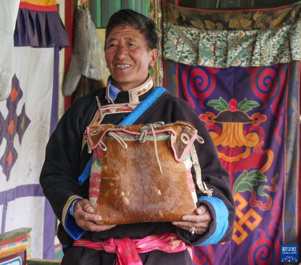 61岁的索朗群培回忆,他小时候见到村里的大人骑在有马包的马上,特别威风,让他对制作马包产生了浓厚兴趣。21岁时,他师从当地老艺人多布杰学习马包制作技艺。如今,他已是林芝市第一批市级非物质文化遗产项目中马包手工制作技艺的传承人。