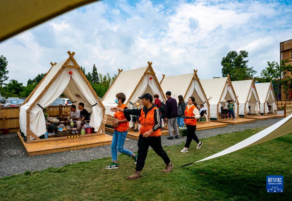 “五一”假期,位于滇池南岸的昆明市晋宁区上蒜镇小渔村热闹非凡,避开热门景区到城市近郊赏景游玩、露营烧烤、体验乡村生活成为不少市民假期出游新选择。近年来,小渔村通过治理水环境、改善村庄道路、改造房屋等实施村庄人居环境提升工程,建设美丽村庄;依托传统渔猎文化,通过引入户外露营、水上餐厅、艺术创作空间等业态,小渔村大力打造以滇池保护为前提的“生态+旅游”示范村。优质的乡村旅游资源不断吸引游客前来游览,美了乡村富了民。