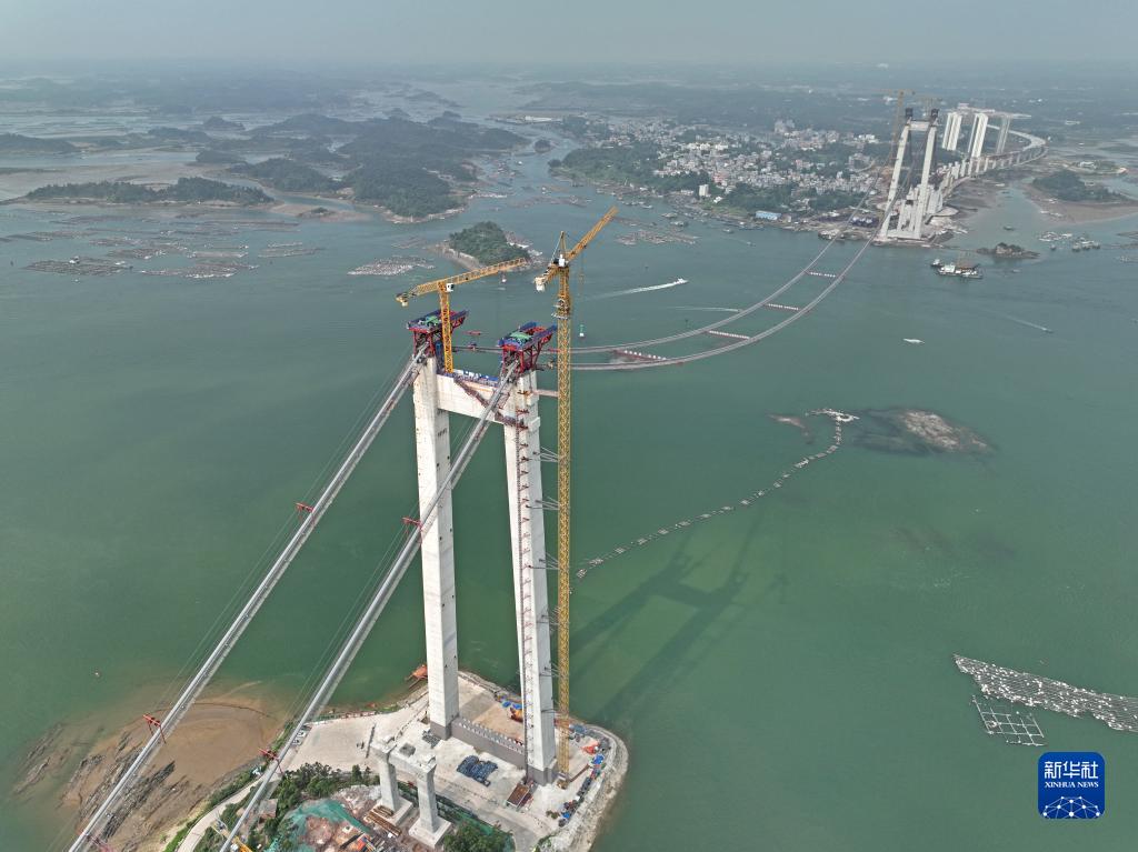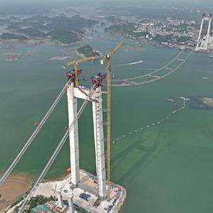 近日,位于钦州市的广西最长跨海大桥——龙门大桥项目建设全面进入上部结构施工阶段,其中龙门大桥主通航孔桥已完成主缆的架设,目前正在进行紧缆施工。
