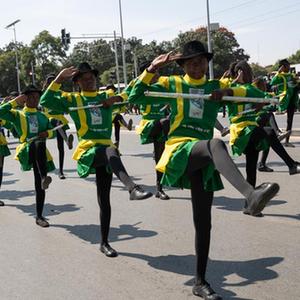 当天上午,赞比亚首都卢萨卡举行游行活动, 庆祝“五一”国际劳动节。