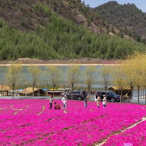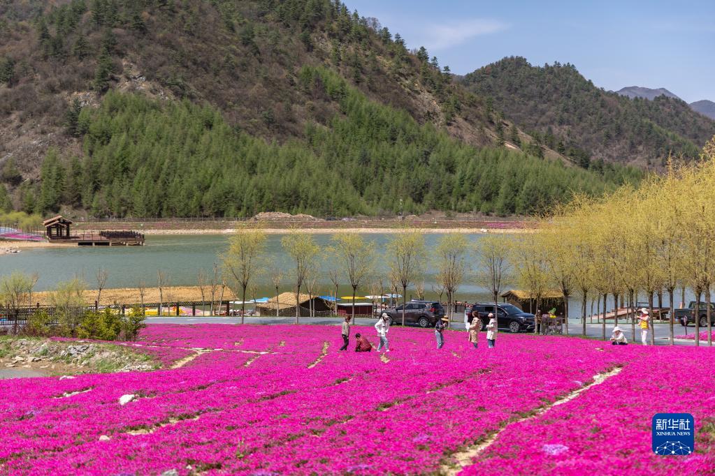 5月1日,在红池坝国家森林公园,游客观赏盛开的芝樱花。