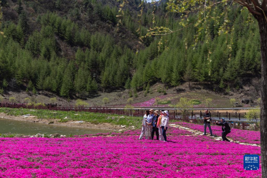 5月1日,在红池坝国家森林公园,游客在花海中打卡拍照。