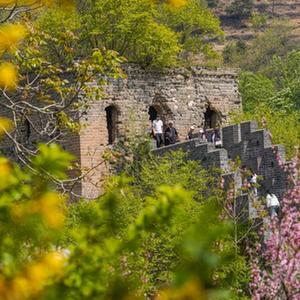 5月2日,游客在河北省迁西县青山关长城景区游玩。