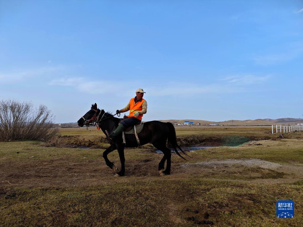 5月2日,河北省承德市丰宁满族自治县大滩镇扎拉营村的护林员在海留图国家湿地公园巡逻。