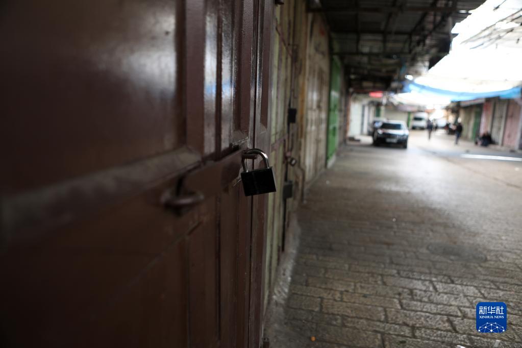 5月2日,约旦河西岸城市希伯伦的部分商店参与罢工,抗议卡迪尔·阿德南被以色列关押后死亡。新华社发(马蒙·沃兹沃兹 摄)