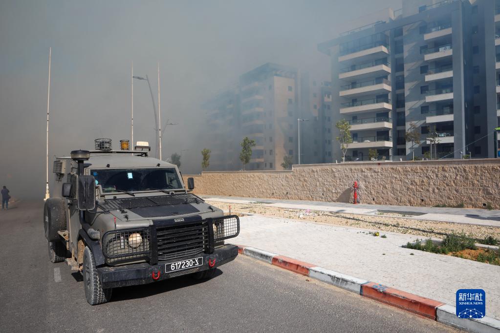 5月2日,在以色列南部城市斯代罗特,一处建筑工地遭火箭弹袭击。