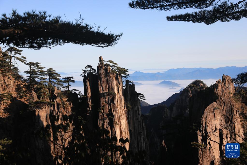 2022年11月3日,雨过天晴,黄山出现云海景观。