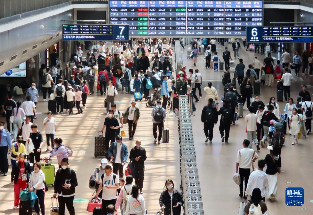 5月3日,旅客在北京西站准备乘车。