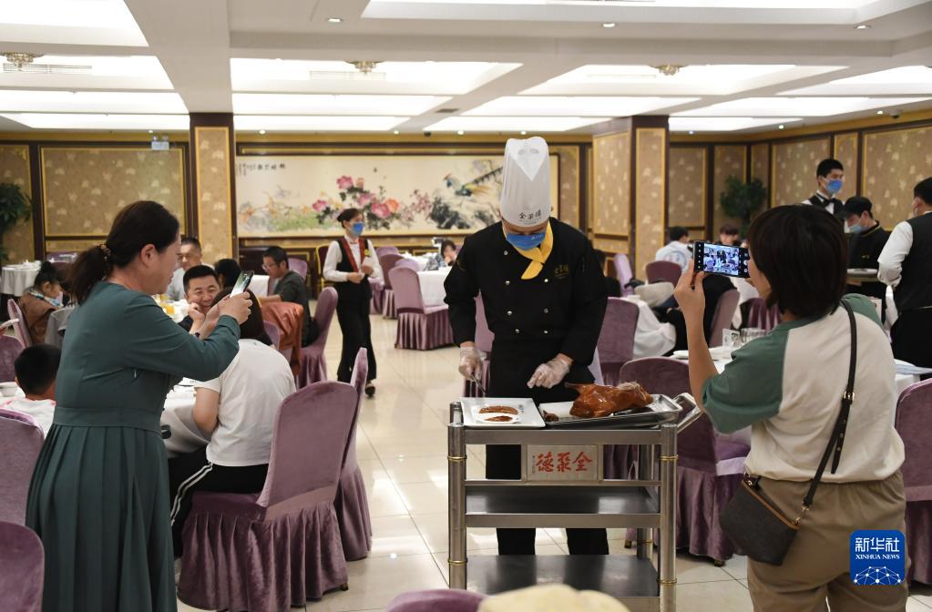 假期里,许多来到北京的游客前来品尝北京的老字号美食,夏志鹏的工作更加忙碌,他说:“我要通过自己的努力,把美味的烤鸭呈现给广大顾客,为他们提供更好的就餐体验,为老字号发展贡献自己的力量。”