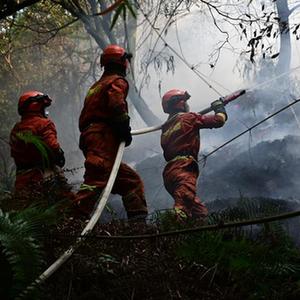 2022年8月26日凌晨,云南省森林消防总队特勤大队消防员增援重庆扑救山火。