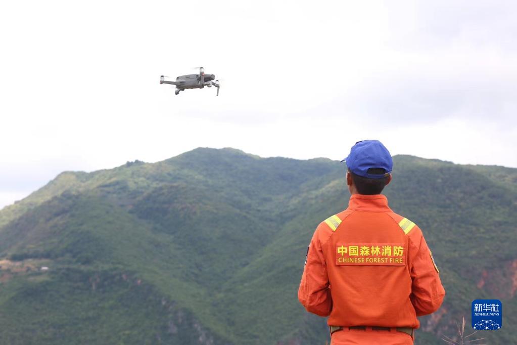 2021年8月16日,云南省森林消防总队特勤大队消防员用无人机对亚洲象群进行监测。