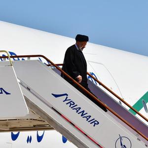 5月3日,伊朗总统易卜拉欣·莱希(中)抵达叙利亚大马士革国际机场。