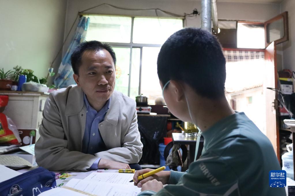 4月12日,曹云山(左)在肺动脉高压疾病患者家里走访。