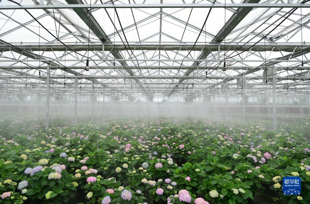 这是5月5日在肥西县经开区一家农林科技企业大棚内拍摄的花卉。