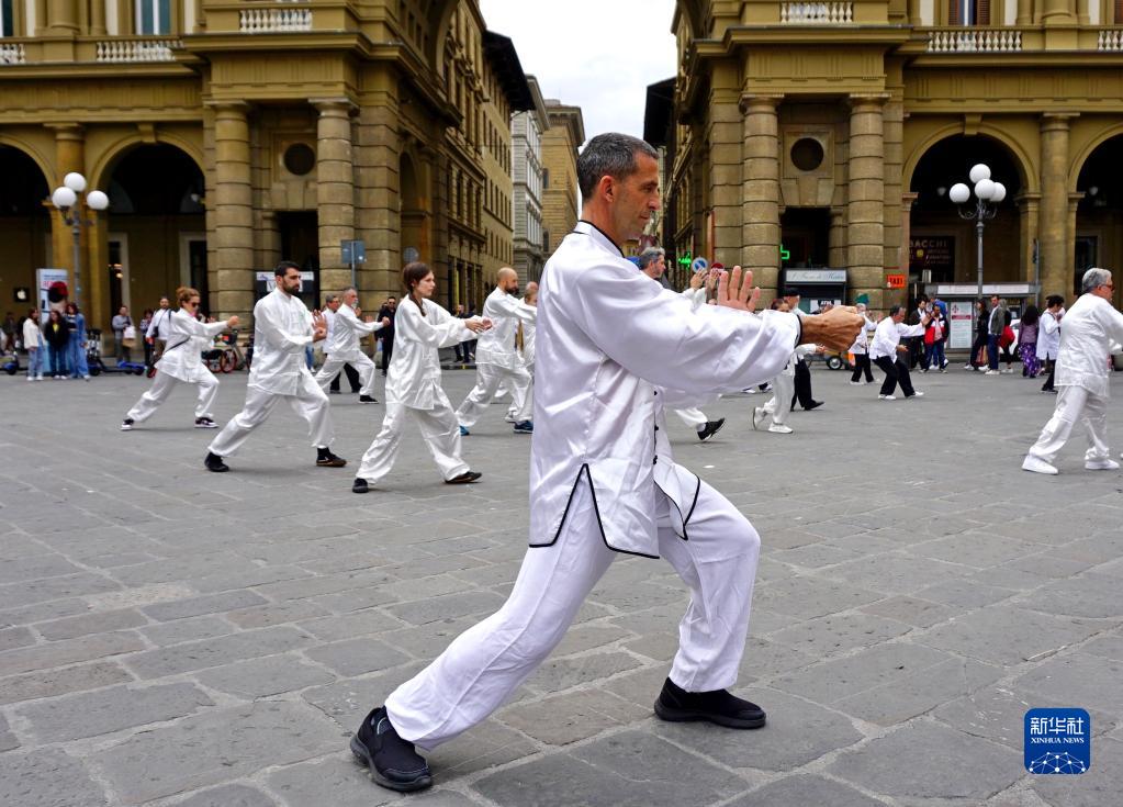 4月29日,在意大利佛罗伦萨,当地太极爱好者打太极拳。