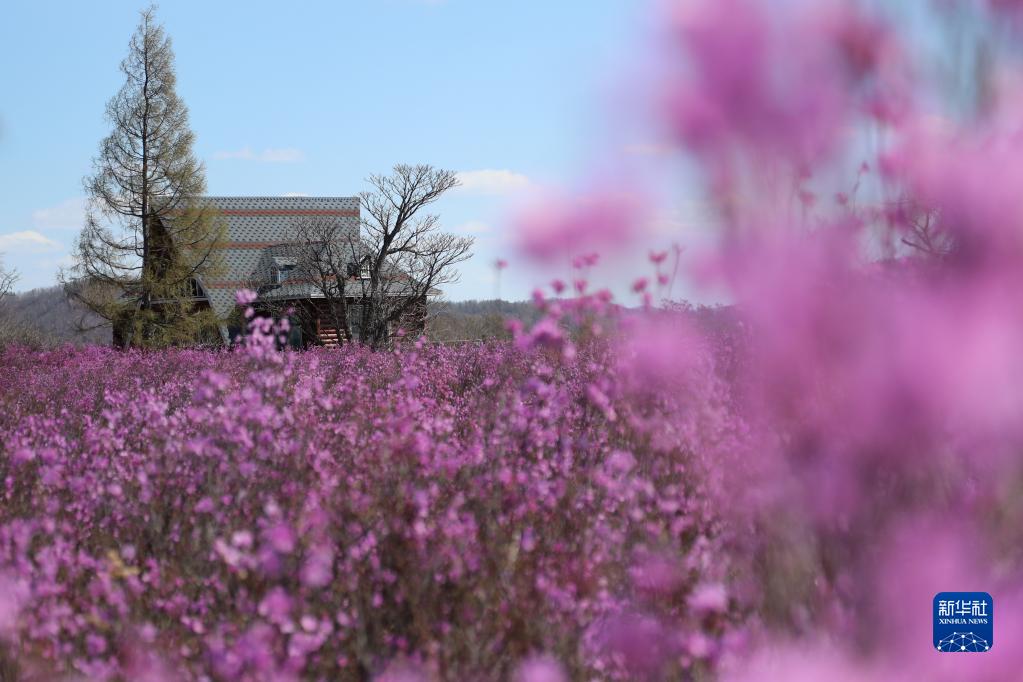 近日,内蒙古呼伦贝尔市鄂伦春自治旗达尔滨湖国家森林公园的杜鹃竞相绽放,进入观赏期。