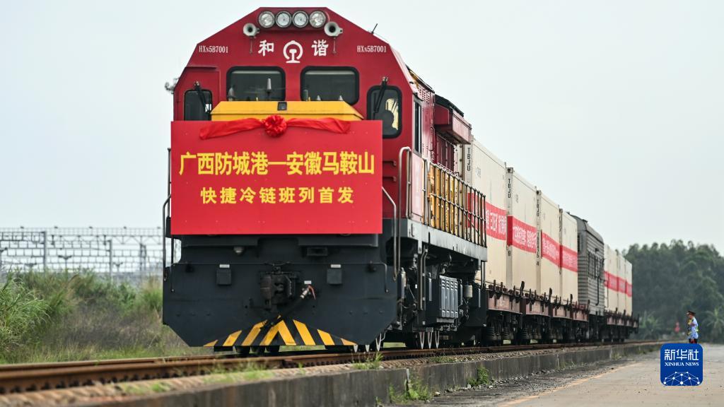 当日,首趟“防城港-马鞍山”冷链班列搭载8个冷链集装箱从广西防城港站发车,前往安徽马鞍山站。这批货物将经马鞍山市分拨至周边的生鲜市场,让当地百姓可以品尝到来自北部湾的海鲜产品。至此,广西防城港开行的冷链班列线路升至9条。
