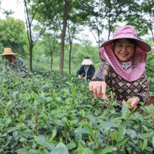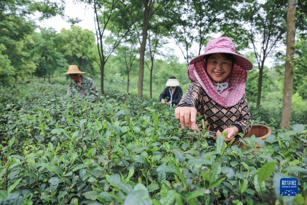 5月6日,湖州市长兴县煤山镇五通山村罗岕茶种植区,当地党员志愿者和种植户在采摘罗岕茶。