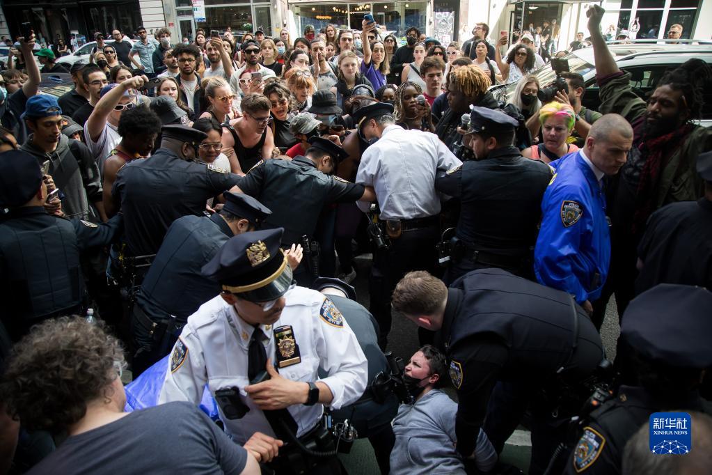5月6日,在美国纽约,警察与抗议者发生冲突。