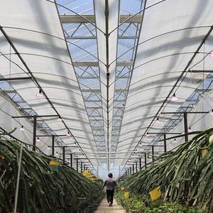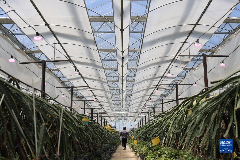 5月7日,种植户在江苏省扬州市江都区现代农业产业园大棚内观察瓜果长势。
